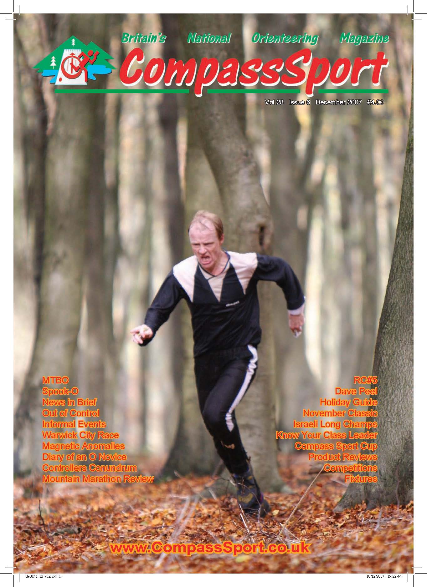 Issue 6 is out now and yet again we have turned out another fabulous edition ;-) It contains Out of Control, Controllers Conundrum, Dave Peels Coaching Tips, Fixtures, Holiday Fixtures 2007, Mountain Marathon Review featuring this years OMM and World Rogaine Champs down under, Northern Ireland Night Championships, CompassSport Cup & Trophy, Oxford City Race, Rewell SO Regional Event, November Classic, Memories of Ski-Orienteering, Sprint O Planning, two competitions and much much more!