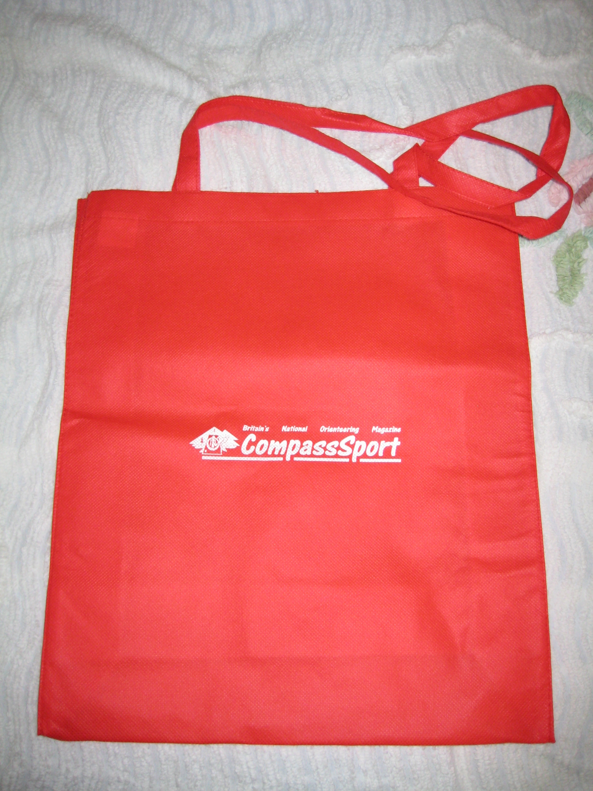 Fancy buying something? CompassSport logoed products are the things for you. Red re-usable CompassSport shopping bags (2.99gbp), a few caps (6.99gbp) and green T-shirts left (4.99gbp). Prices include P&P in the UK. Send cheque payable to CompassSport, together with your address to 6, Glenmore Park, Tunbridge Wells, TN2 5NZ Questions? mail Nick (at) CompassSport.co.uk